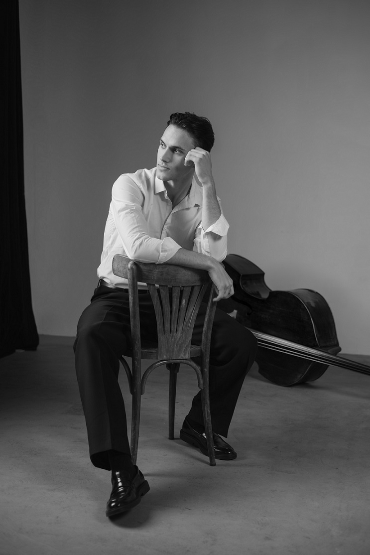 Dmytro Rudyk, Kontrabass, geboren 2000 in Ternopil, Ukraine. Seine Kontrabass-Ausbildung begann er mit sieben Jahren an der Musikschule in Ternopil und setzte sie ab 2015 an der Kruschelnyzka-Berufsfachschule für Musik fort. 2019-2022 studierte bei Niek de Groot an der Folkwang Universität der Künste, seit 2022 bei Rick Stotijn an der Robert Schumann Hochschule Düsseldorf. Meisterkurse belegte er bei Wies de Boeve, Petru Iuga, Janne Saksala, Christine Hoock, Gunars Upatnieks, Michinori Bunya, Dan Styffe und Dorin Marc.